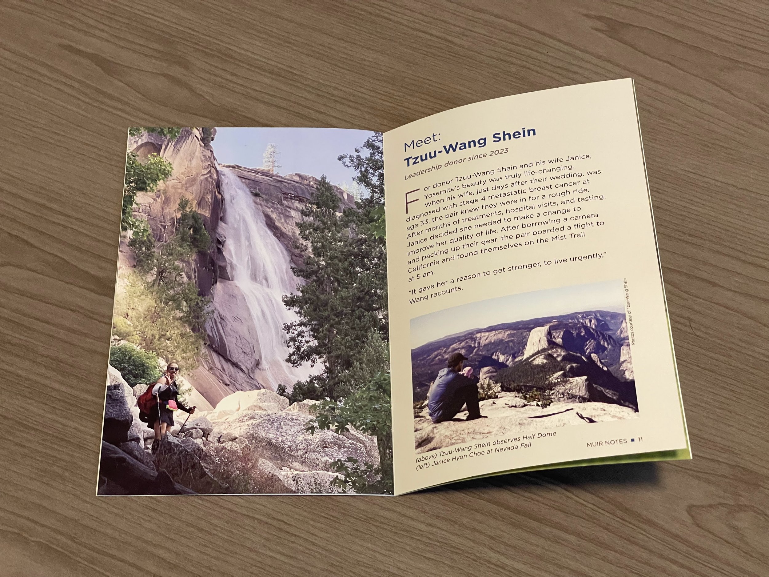 The below essay was summarized and published in the Spring 2025 edition of the Yosemite Muir Notes publication, which goes out to the park’s extensive donor community. It was a privilege to lend a voice that blended my love of National Parks, conservation, wellness, MBC advocacy, and a dedication to my late wife Janice. Gratitude to the Yosemite Conservancy.